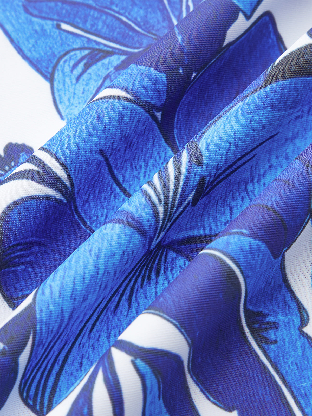 The Blue Floral Halter Dress blends summer ease with feminine charm. Featuring a halter neckline and a figure-skimming silhouette, this mini dress is decorated with bold blue floral prints on a crisp white base. The wrap-style waist tie accentuates your shape while adding a playful touch — ideal for beachside dinners or sunny strolls.
